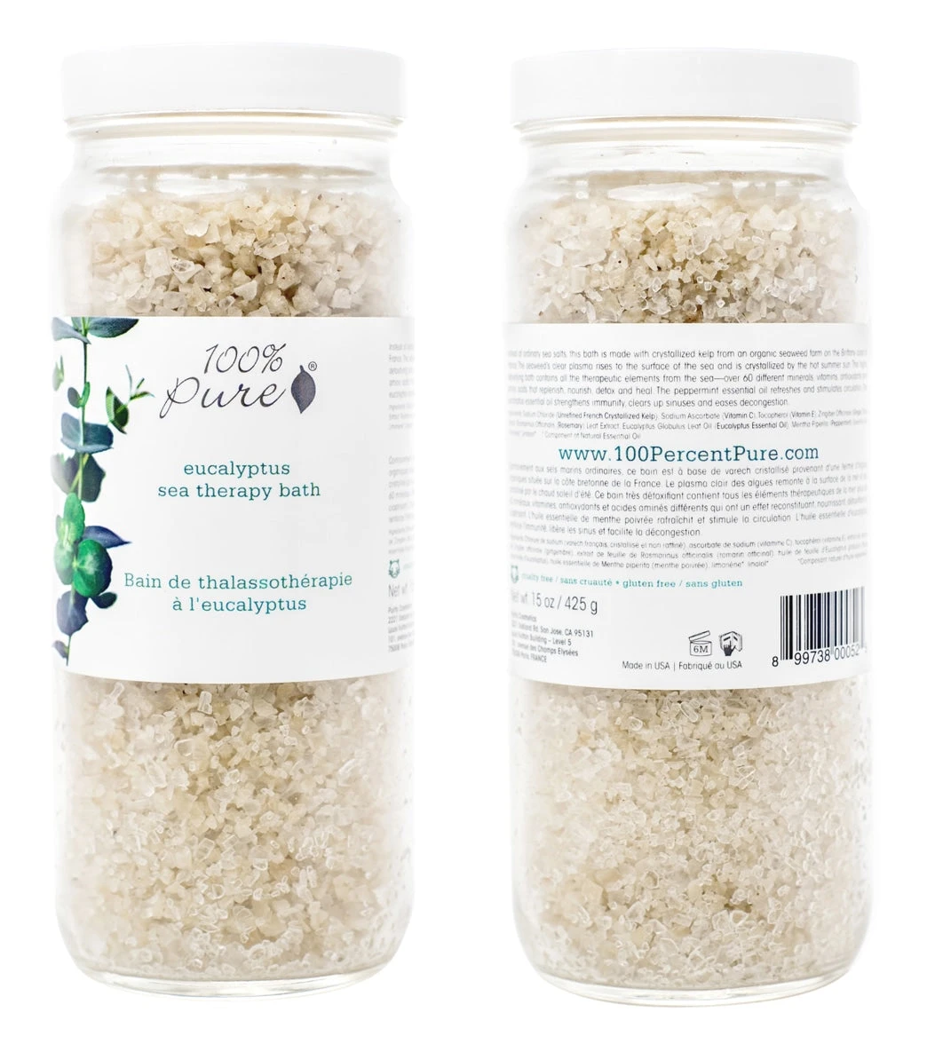 The 100% Pure Lavender Sea Therapy Bath Soak contains deeply-relaxing bath salts made with pure crystallized kelp to replenish, nourish, and detoxify. Infused with therapeutic French lavender to soothe and calm.