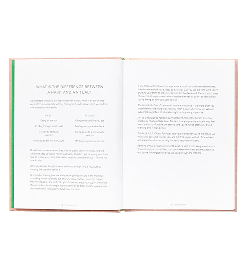 We all want a more calm and spacious way of living, but we are often unsure of how to step off the crazy treadmill of day-to-day routines and responsibilities. Wellness pioneers Nadia Narain and Katia Narain Phillips have learned through years of practice that simple rituals can help you slow down the pace of modern life and re-center yourself. Rituals for Every Day shares Narian and Narian Phillipsโs easy-to-follow step-by-step advice. Through engaging in small, simple, and reflective routines, you can let these basic, everyday rituals bring you back to yourself.