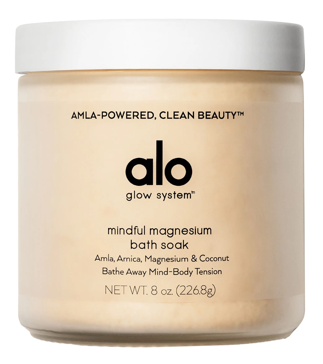 The Alo Magnesium Bath Soak is made to reset and unwind the mind and body. Antioxidant-rich amla superberries plus coconut and avocado oil hydrate and nourish the skin. Sunny, all-natural coconut, mandarin, and blood orange aromatics melt away stress and restore tired muscles. Perfect for a pre-sleep soak.