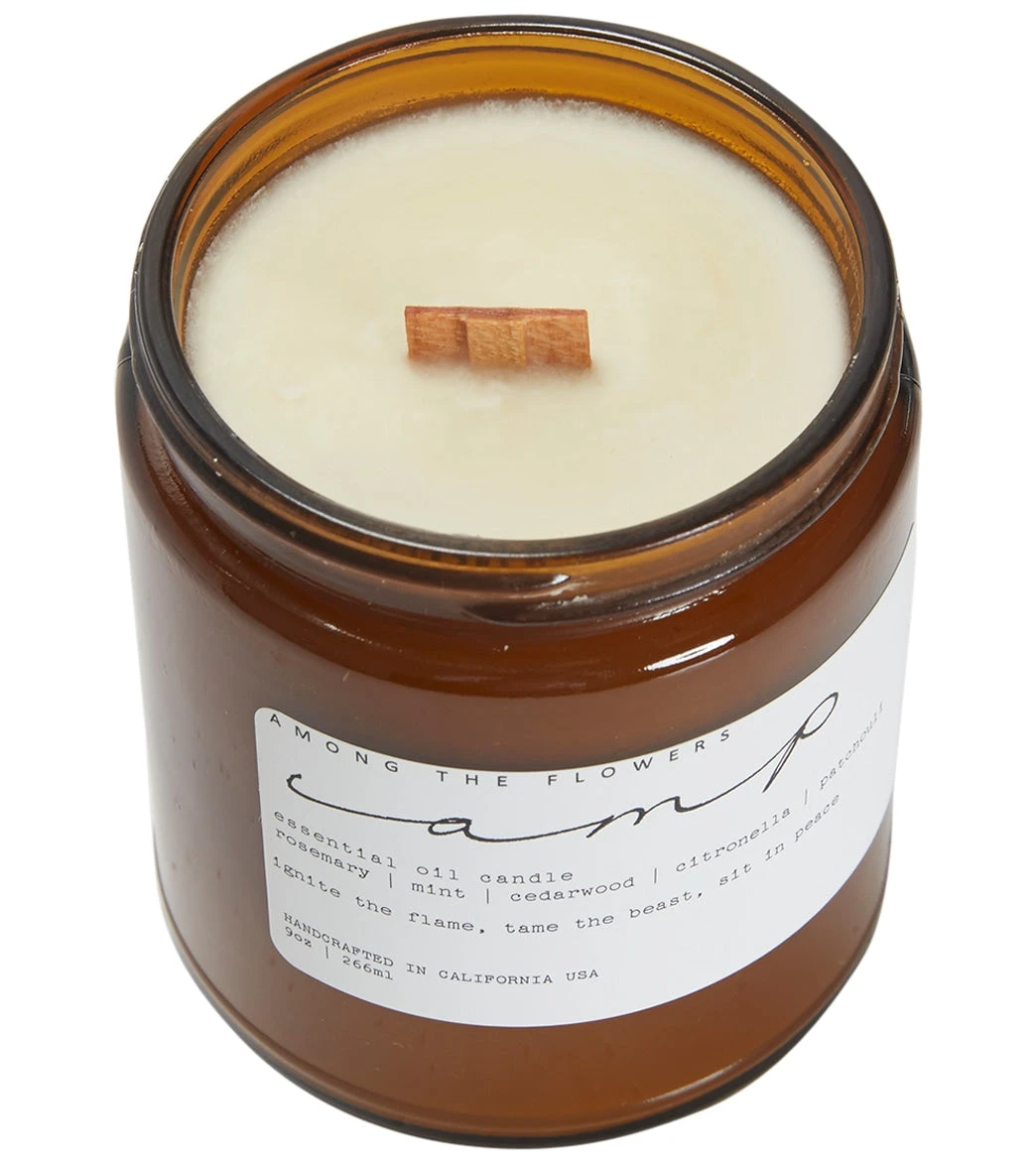 A candle to repel insects with essential oils, the Among The Flowers Camp Candle is a necessity for enjoying the outdoors.