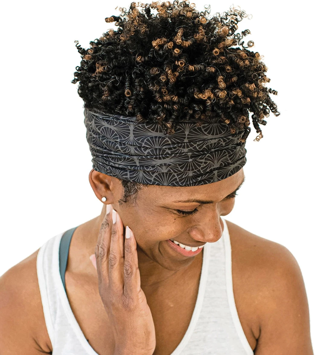 The Aruna Project Rita Headbands are extra-wide headbands made from recycled polyester with a peached hand-feel for a no-slip grip and are machine washable.