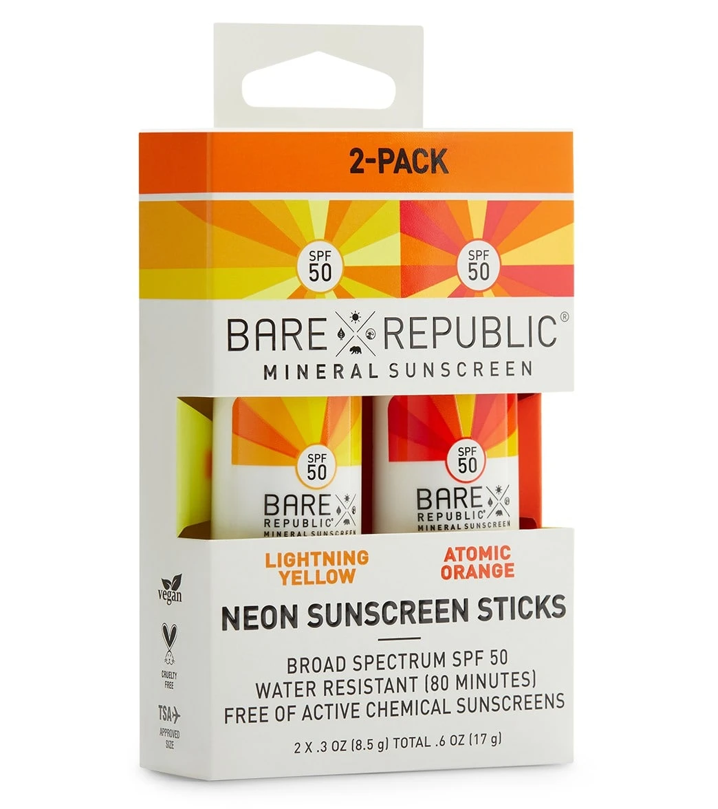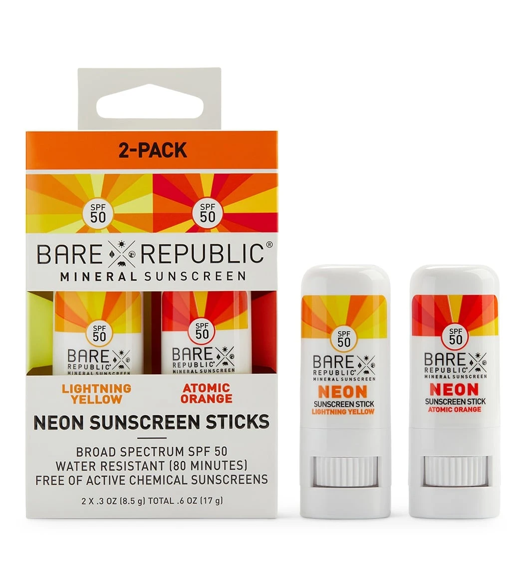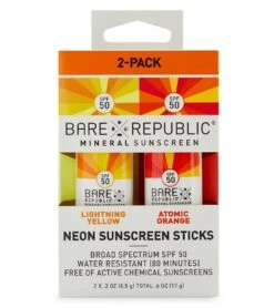 Protect your skin with the BARE Republic Mineral Neon SPF 50 Color Stick 2 Pack featuring bright colors.