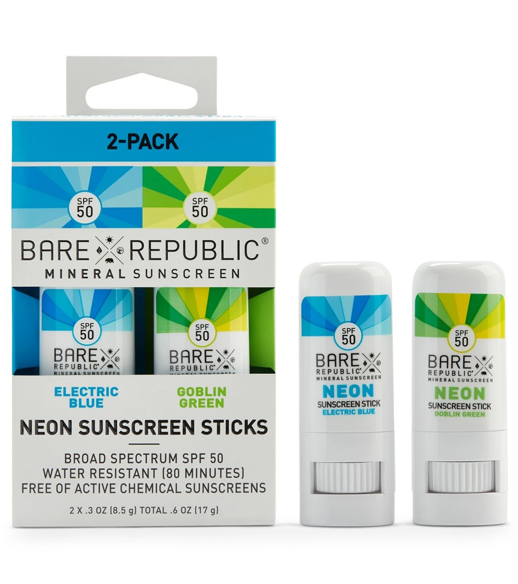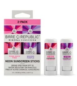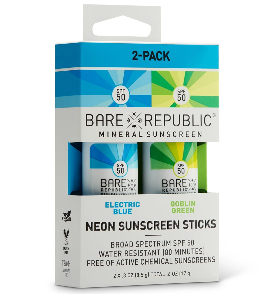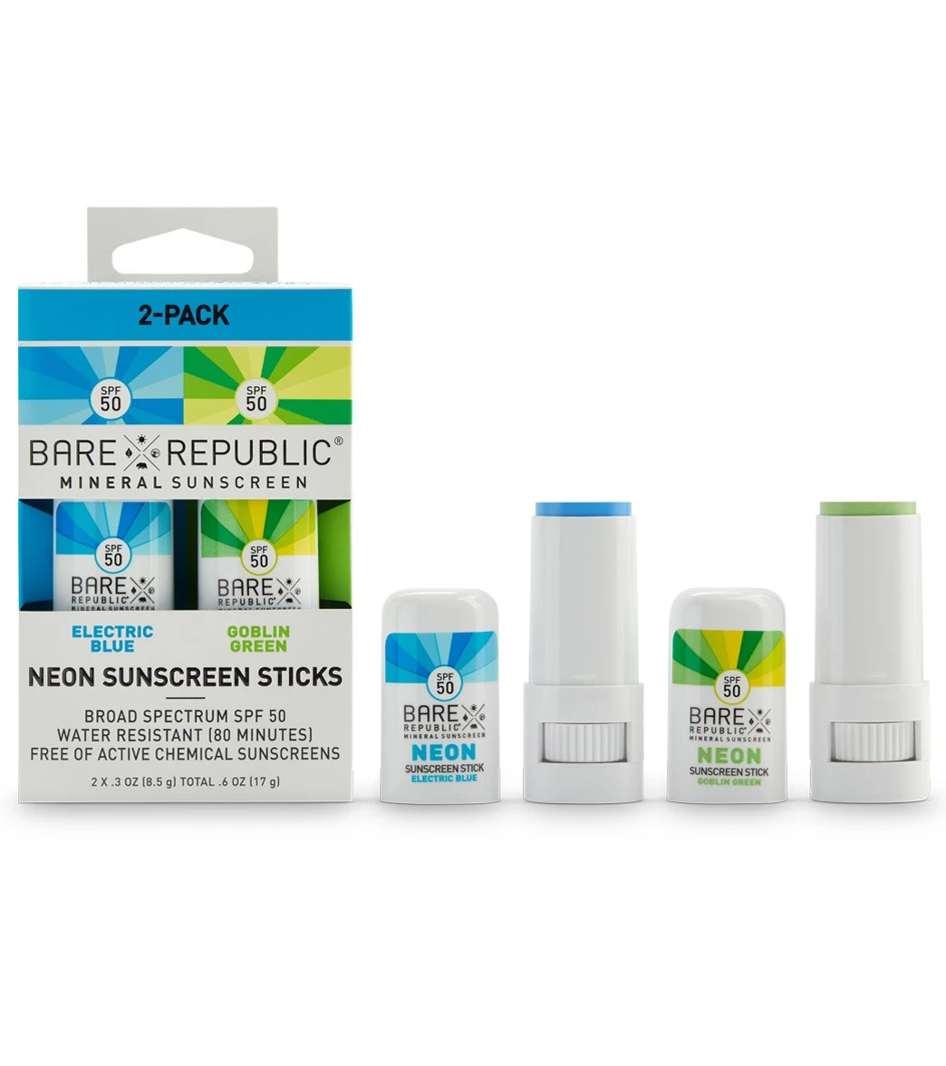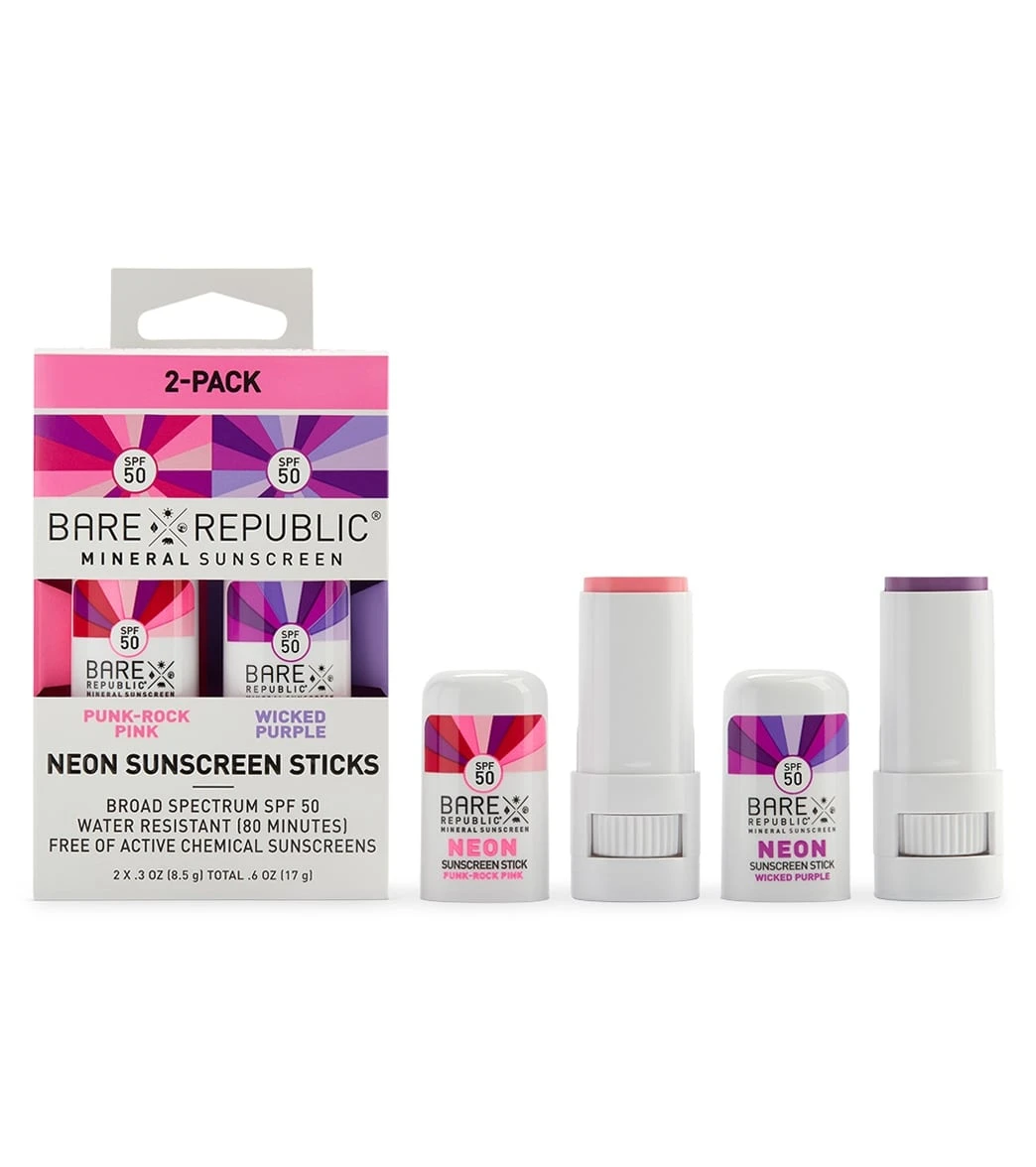 Protect your skin with the BARE Republic Mineral Neon SPF 50 Color Stick 2 Pack featuring bright colors.