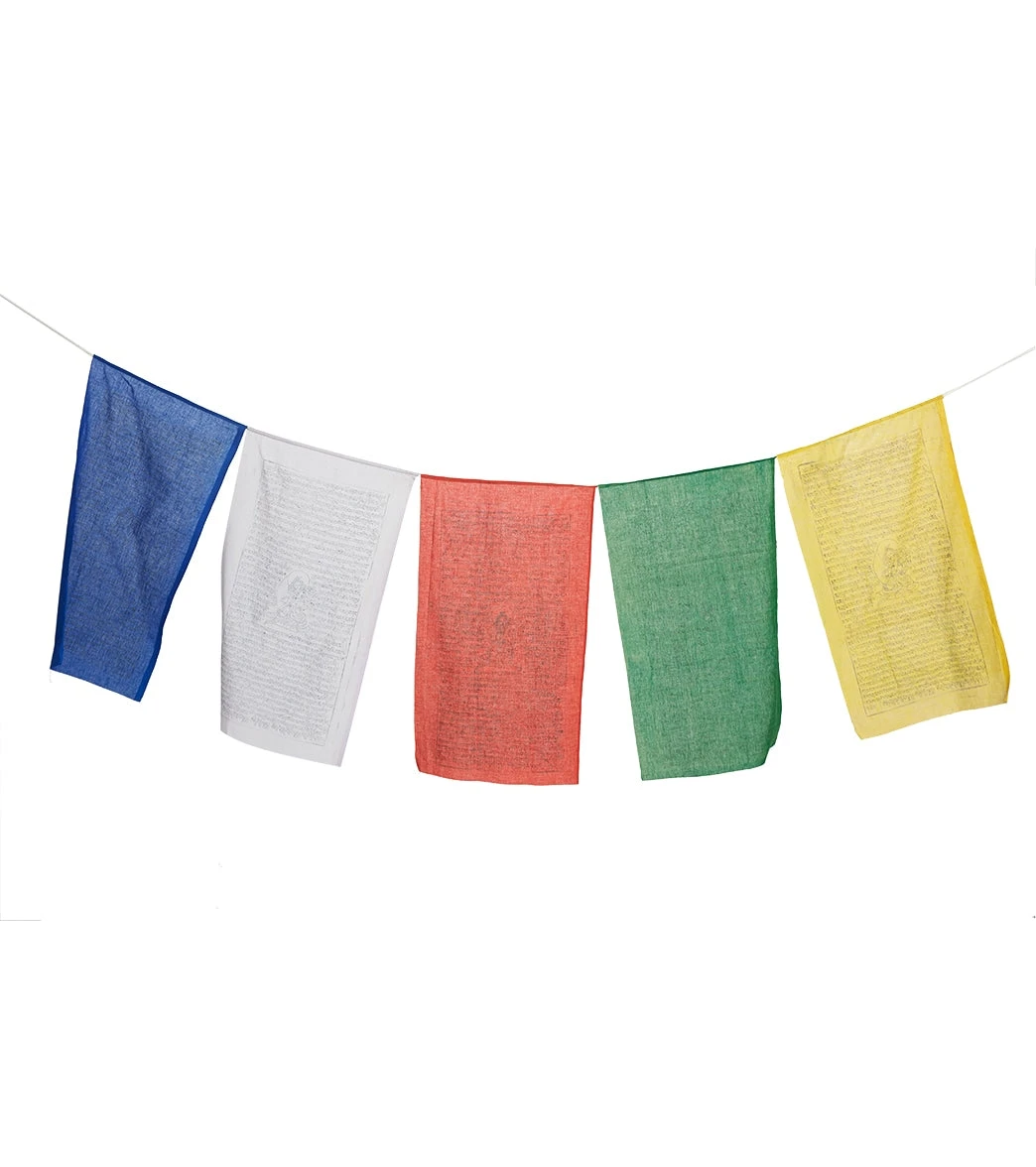 A cultural expression of good wishes, this dZi Prayer Flag: GCS Tara, Large features the goddess Tara, bodhisattva of compassion.
