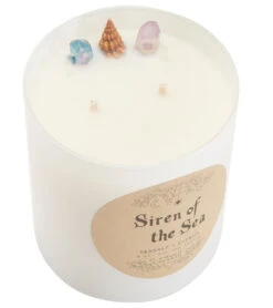 - Rich notes of a sea-salt, lily and orange blossom parallel the ocean and its free flowing essence of the imagination. This candle is adorned with titanium-coated, pastel quartz nestled around a seashell to represent the water element. The Siren of the Sea is a feminine expression of a watery, subconscious seduction and is meant to invite sensitivity, empathy and emotional awareness.