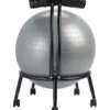 The Gaiam Balance Ball & Base Kit works great behind a desk in the office as well as at home as a yoga or stability workout ball. Stays in place and will not roll away with the base kit; Ball and base are not connected and can be removed for ball-only workouts; Anti-burst – safe for users up to 300 pounds; Includes an air pump