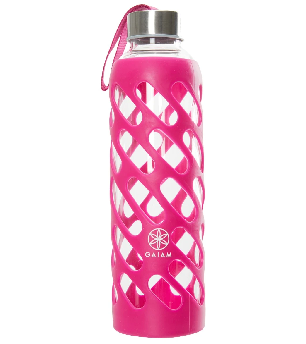 You canโt go wrong with this Gaiam Wild Berry Sure Grip Glass Water Bottle 20oz. Fitted with colorful silicone sleeves to enhance your hold and prevent breakage, each bottle has a leak-proof stainless-steel cap with a convenient carry strap for on-the-go use.