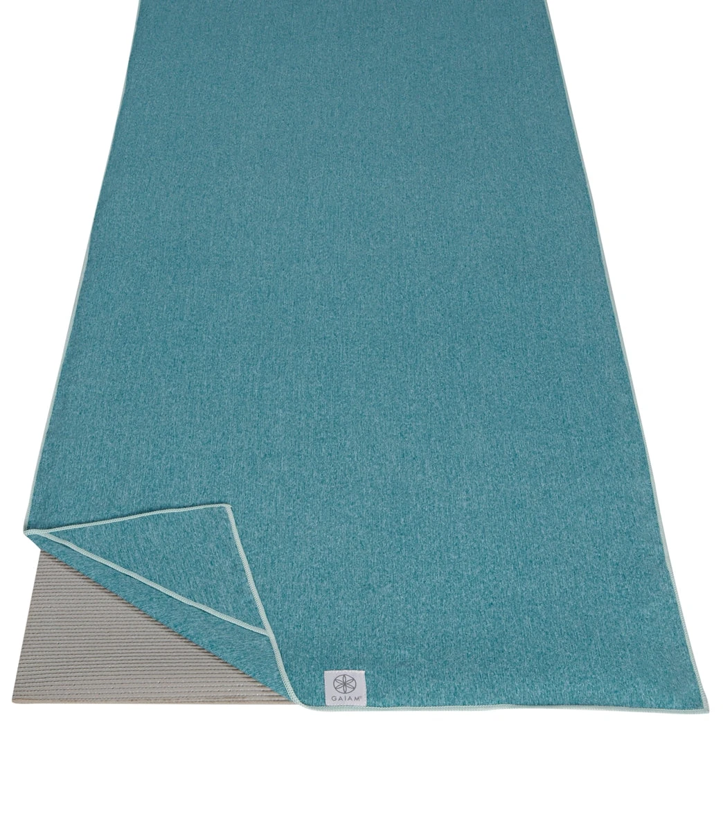 Get ready for your next hot yoga session with the Gaiam Yoga Mat Towel featuring super-absorbent microfiber.