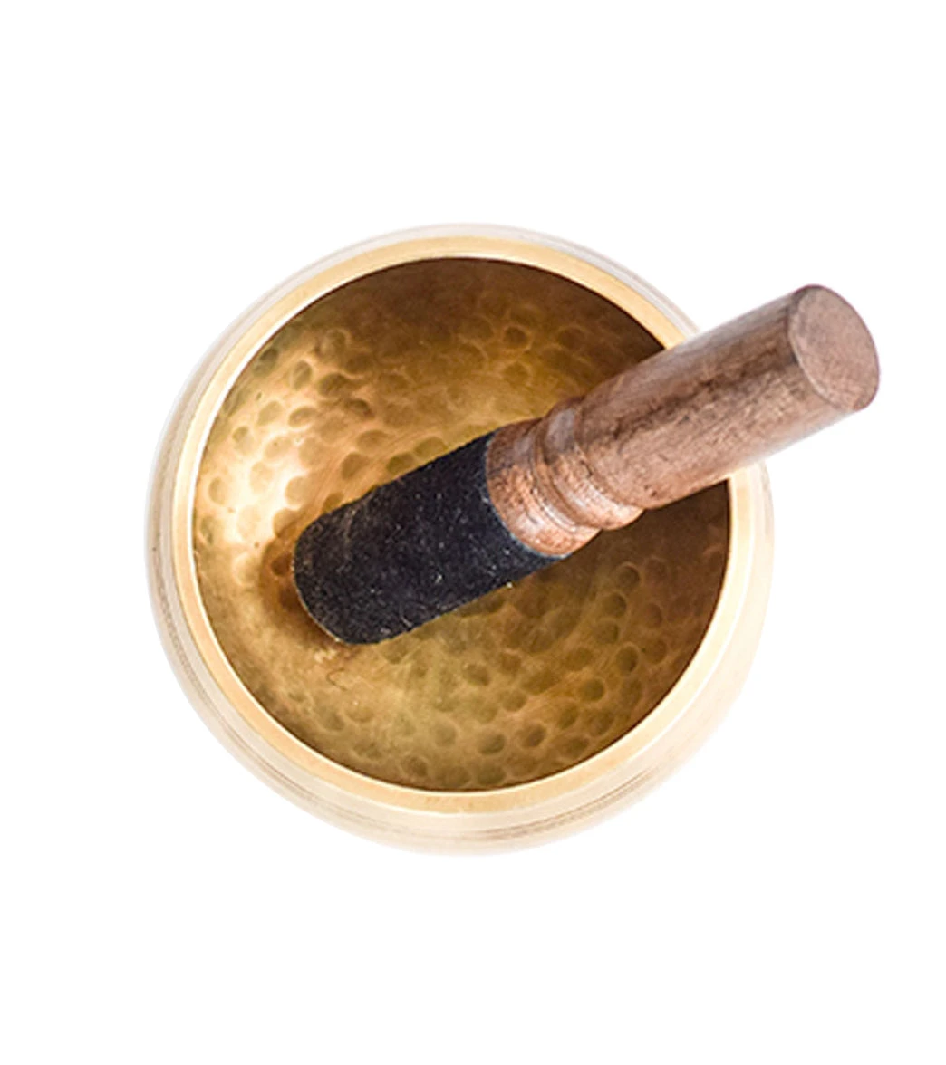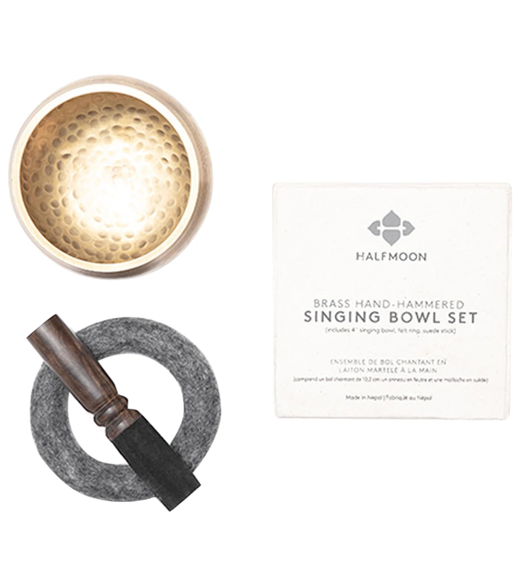Practice sound therapy with the Halfmoon 4″ Hand Hammered Brass Singing Bowl.