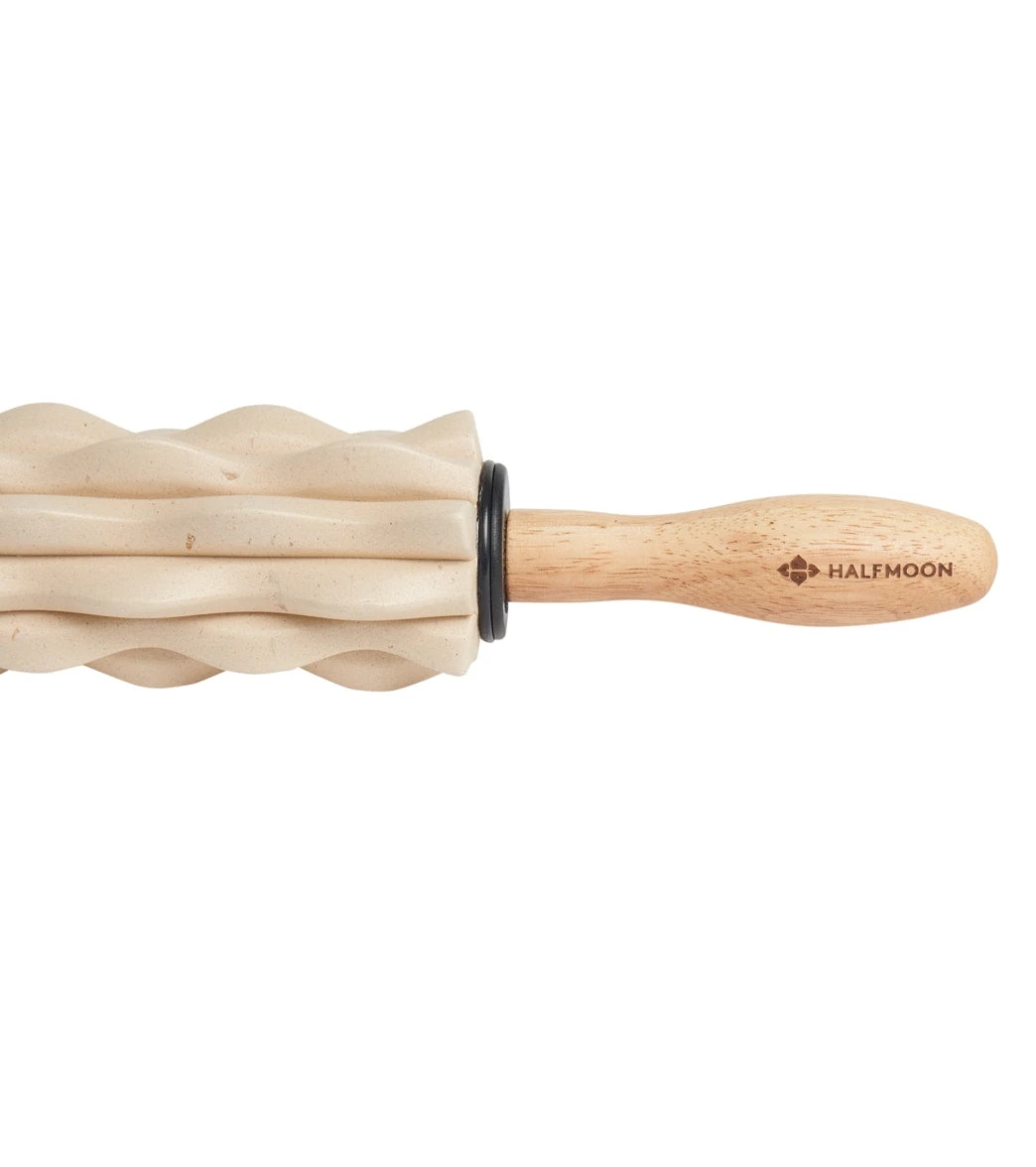 The Halfmoon Eco Massage Roller offers targeted tension relief and enhanced workout recovery. The roller itself is made from a foam blend that contains bamboo, rice husk, straw, wood particles, and other plant-based, renewable components. Its ridged, easy-clean surface delivers firm pressure with some give, and its βrolling pinβ construction provides more control than the standard foam roller.