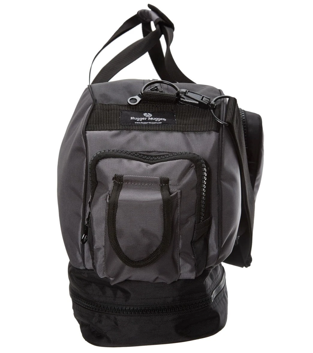 - Two-tone design with embroidered Hugger Mugger logo at front.