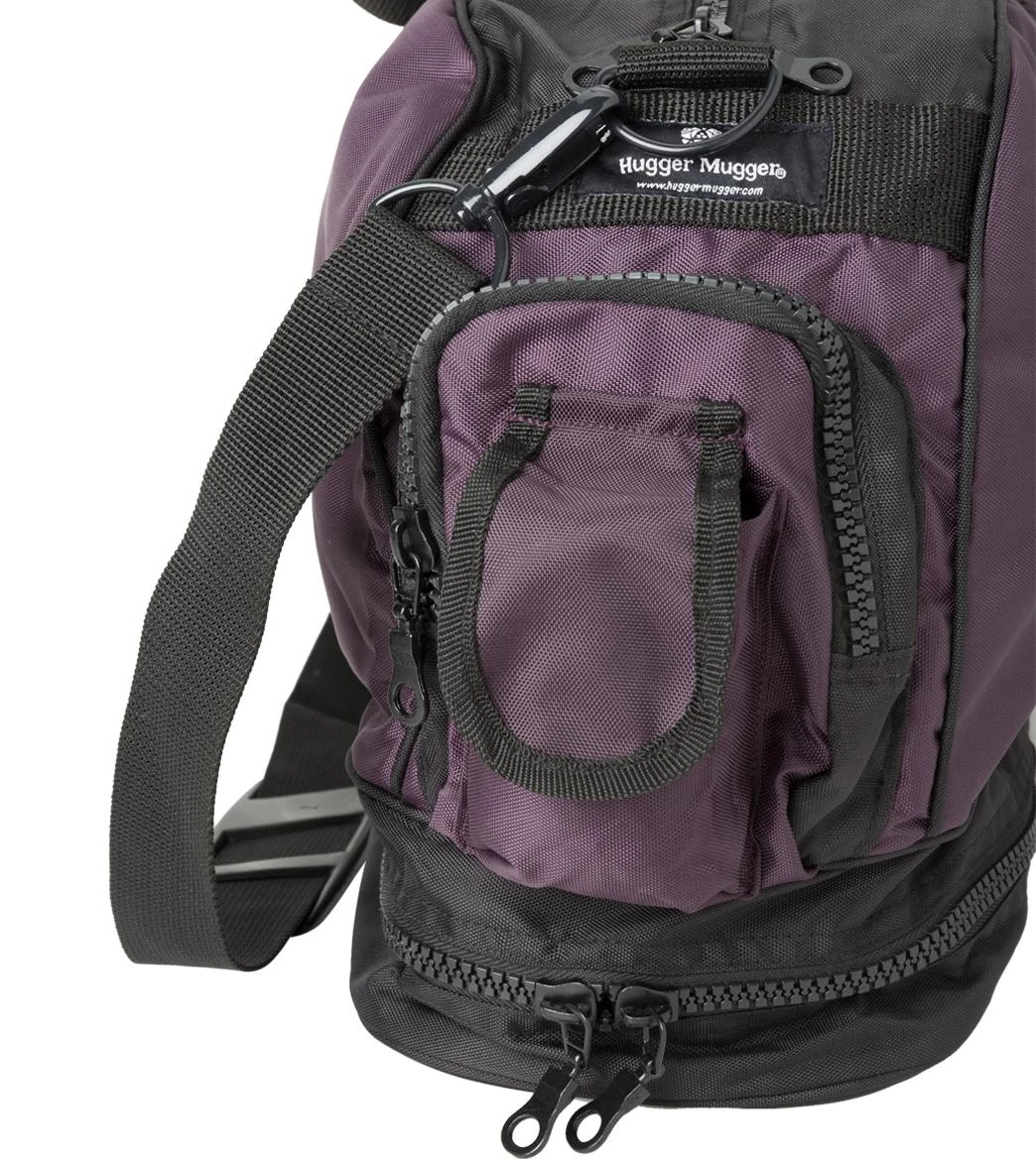 - Two-tone design with embroidered Hugger Mugger logo at front.