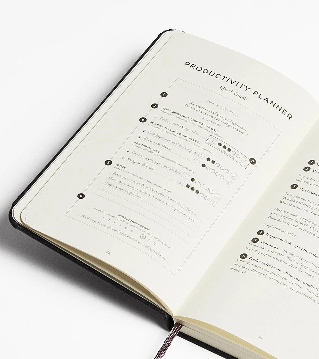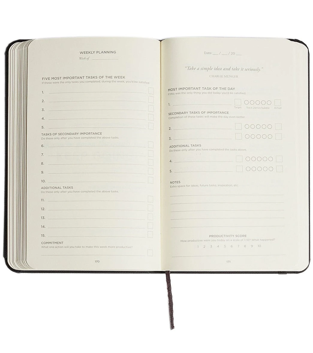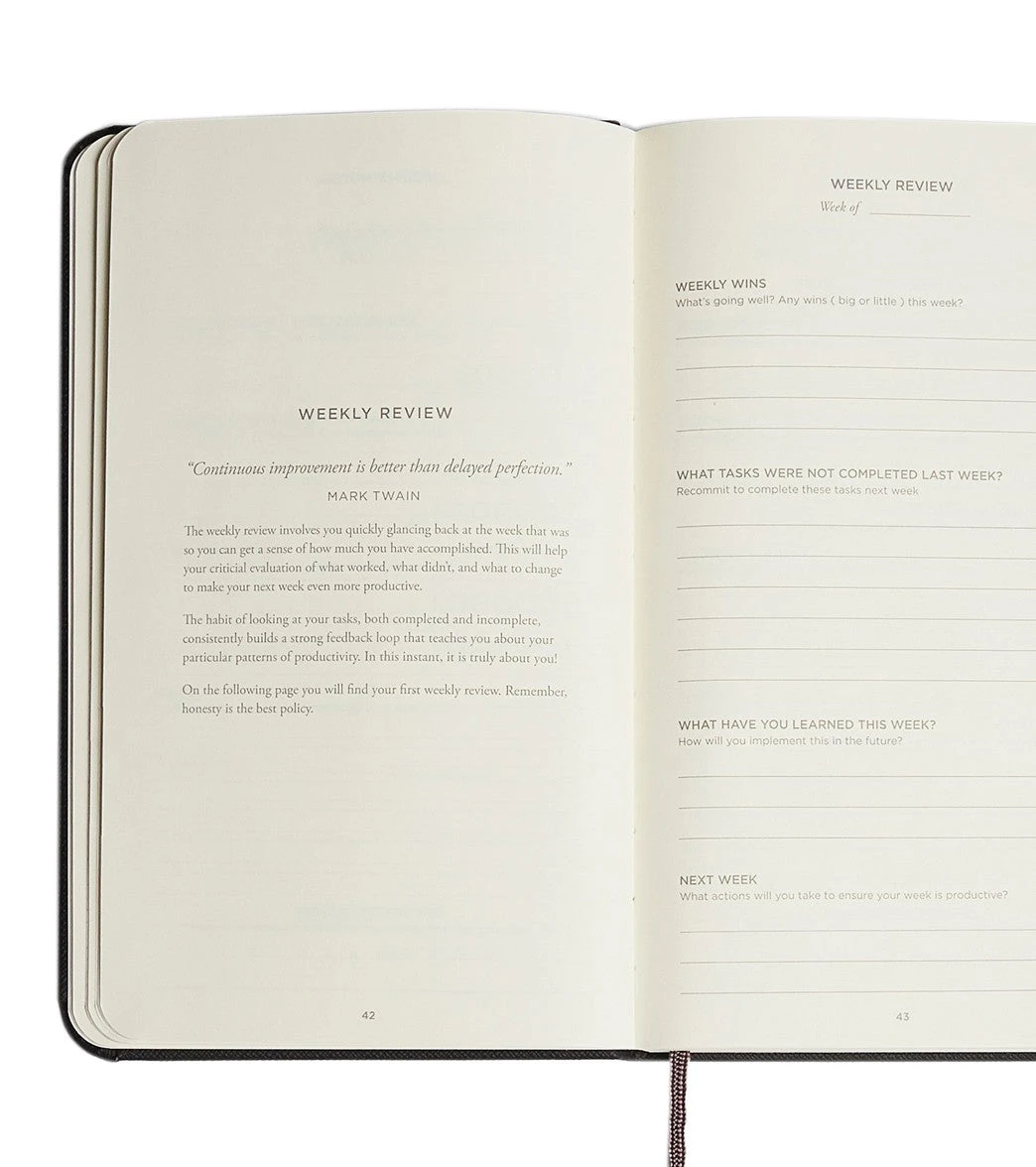 Make the most of your day with The Productivity Planner. This planner will help you stay focused and provides a goal-oriented system to enforce productivity. By the end of the week, you’ll be able to review your time management capabilities and be even better the next week! ย