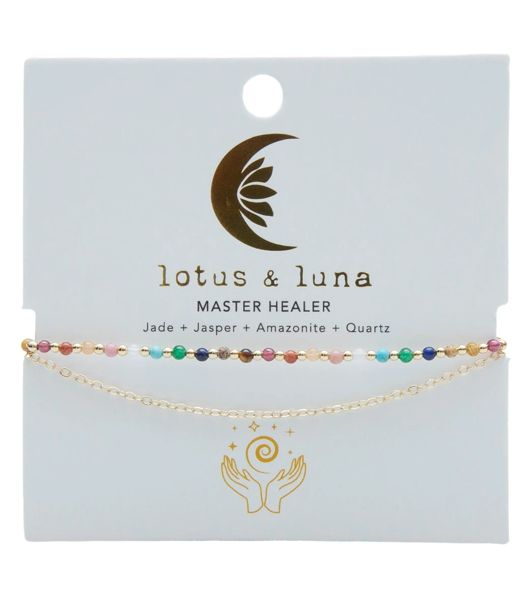 - Metals/Stone: Lapis Lazuli, Quartz, Turquoise, Rose Quartz, Rhodolite, Agate, Sandstone, Garnet, Tiger”s Eye, Jasper + Brass w/ 14K Gold Plate