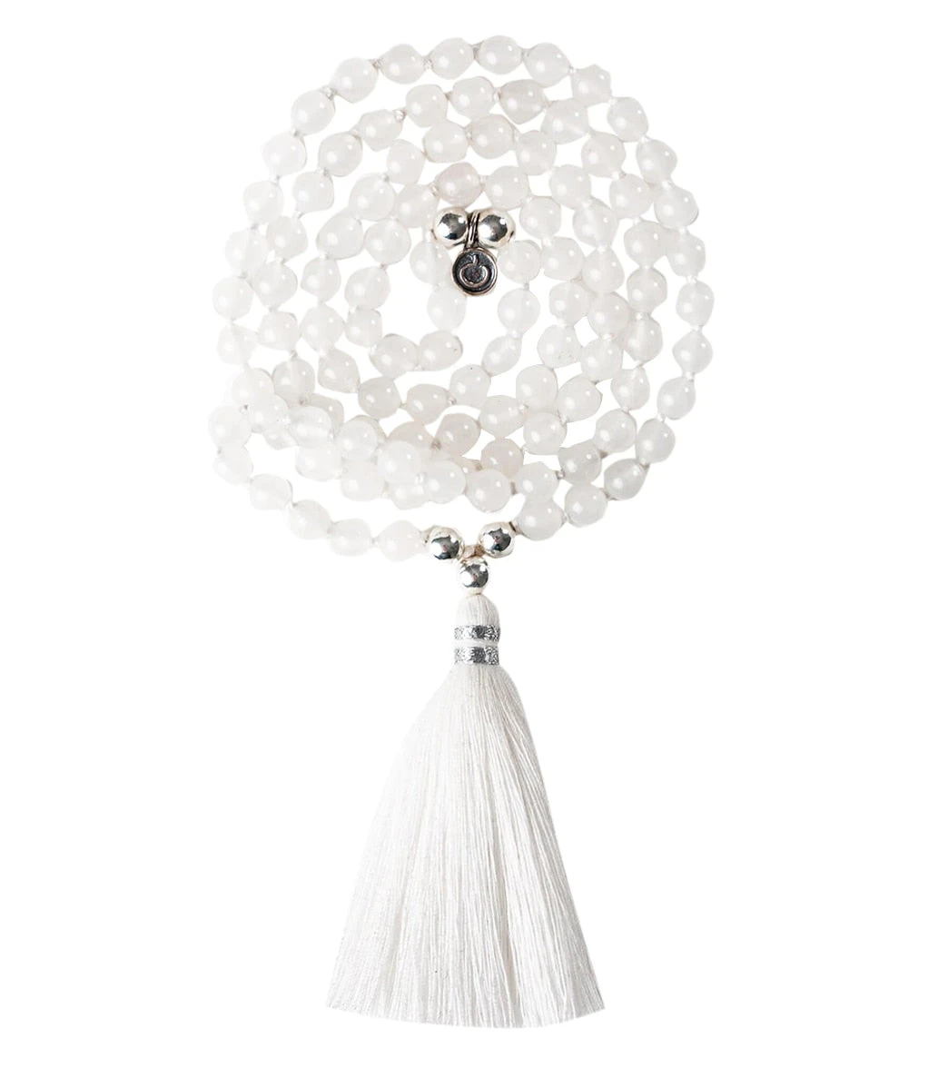Embrace beginner’s mind with the Mala Collective Begin Again Mala, featuring 108 white jade and silver beads.
