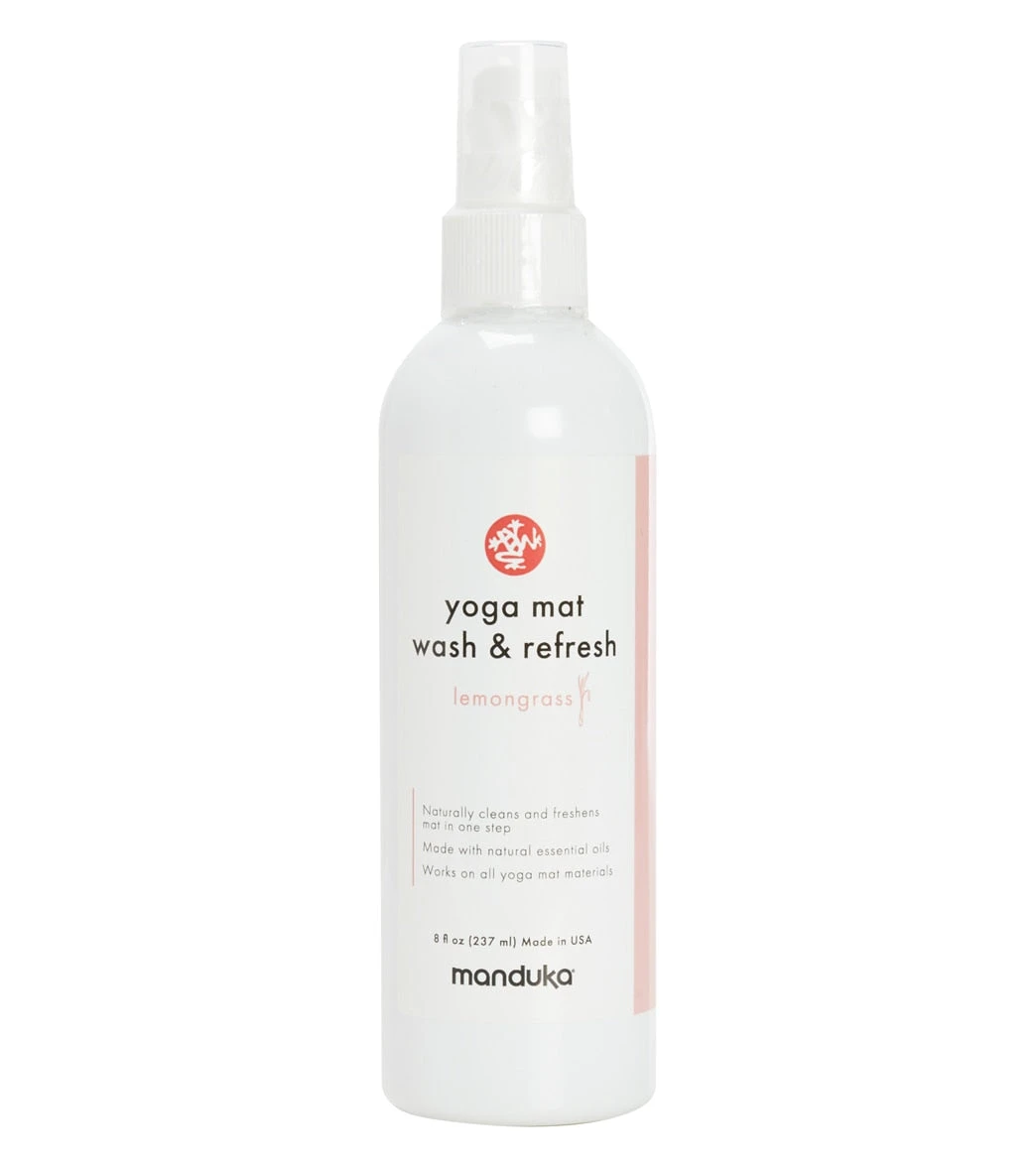 The Manduka Yoga Mat Wash & Refresh, 8 oz uses 100% naturally derived ingredients, formulated to keep your yoga mat smelling fresh and free from surface dirt and stains. Use it after every class to keep your mat clean and odor-free.