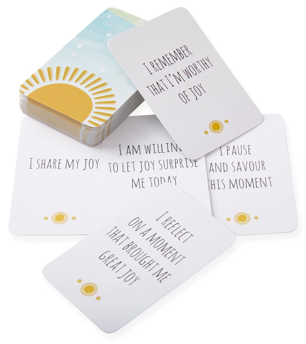 The May You Know Joy May You Find Joy is a 42-card mini intention card deck, designed to inspire you to find the joy within you and all around you every day.Β These cards are a simple and beautiful way to spread joy and also cultivate it in our everyday lives.