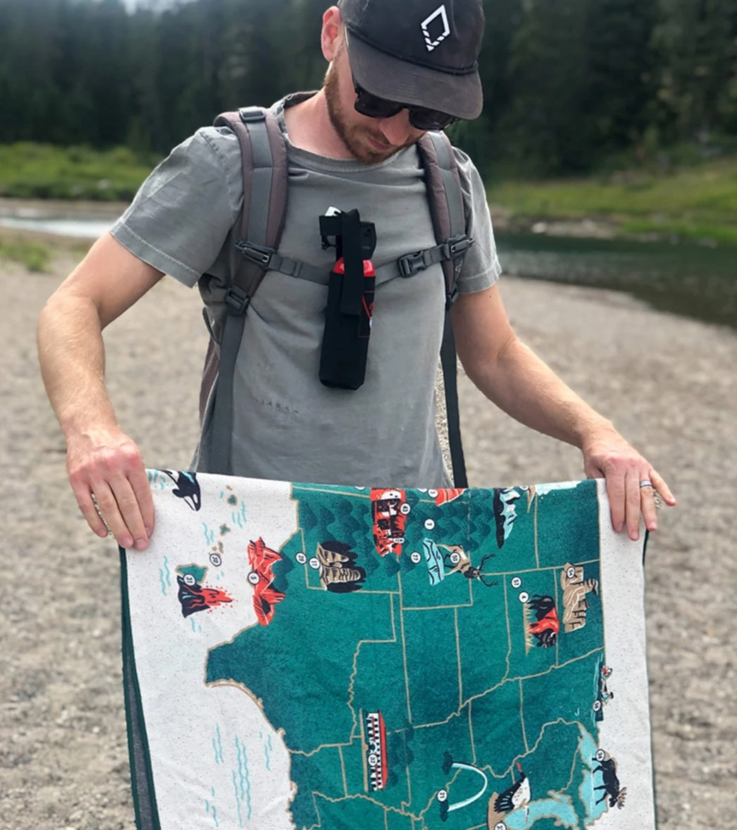 Nomadix is in cahoots with Fifty-Nine Parks for this series of towels devoted to protecting our public lands. A portion of each National Parks towel sale will be donated to protecting our natural places through Conservation Alliance. The Nomadix 59 Parks US Map has been dubbed as The Only Towel You Need® because it is a high-performance towel perfect for travel, beach, yoga, & more. It is designed to be versatile without sacrificing performance, so you can own less & do more.
