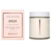 The RXLA White Sandalwood Soy Candle, 15 oz is warm and calming, with light notes of sandalwood, amber, musk, and a touch of vanilla.