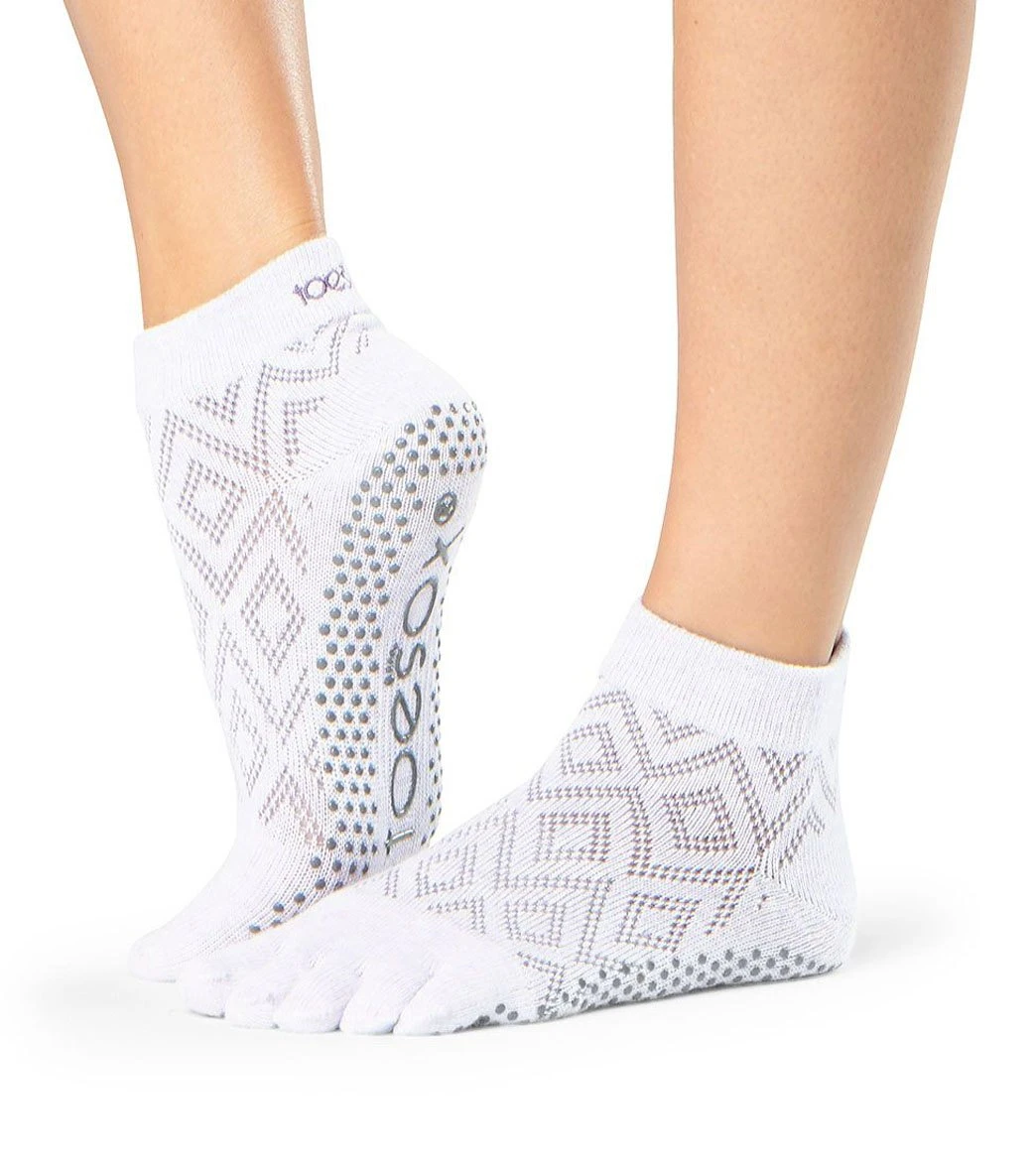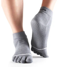 Enhance your performance with these Toesox Ankle Length Full-Toe Yoga Grip Socks. Its closed five-toe design allows your toes to spread naturally for a better stance with support, while a patented non-slip sole provides secure footing as you move on and off the mat.