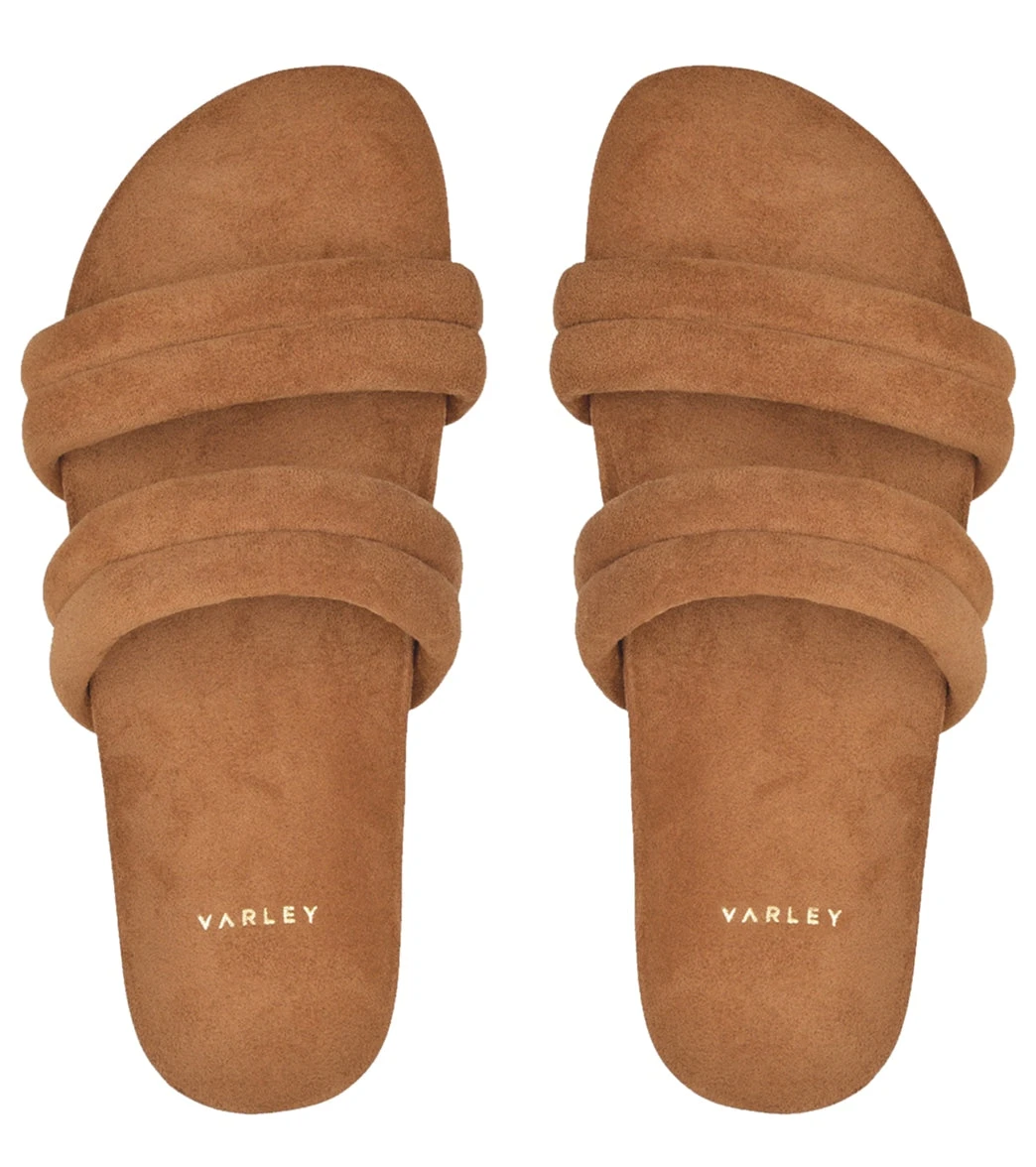 Treat your feet to the ultimate comfort and sophistication with the Varley Giles Quilted Slides 2.0, made with ultra-soft faux suede and cushioned soles.