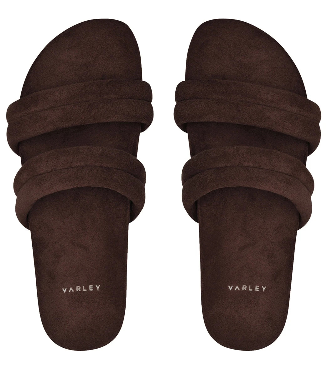 Treat your feet to the ultimate comfort and sophistication with the Varley Giles Quilted Slides 2.0, made with ultra-soft faux suede and cushioned soles.