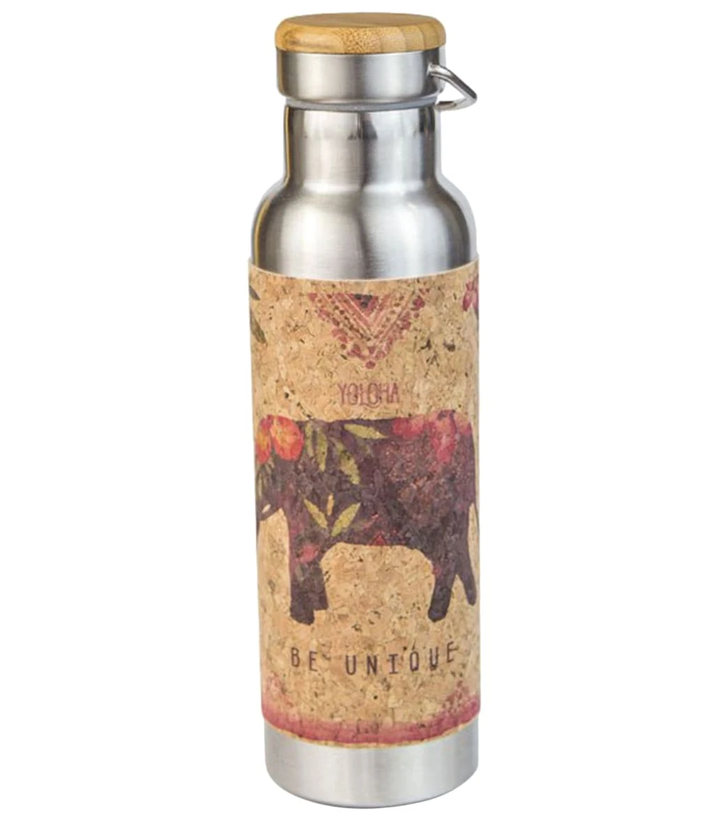 Stay hydrated with the Yoloha Artist Collection Water Bottle. Made with sustainable bamboo, natural cork and high quality 18/8 food-grade stainless steel. This water bottle has the ability to keep liquids either cold for 24 hours or hot for 6 hours, perfect for sipping on your morning tea. Built to last a lifetime, this water bottle is made for daily use.