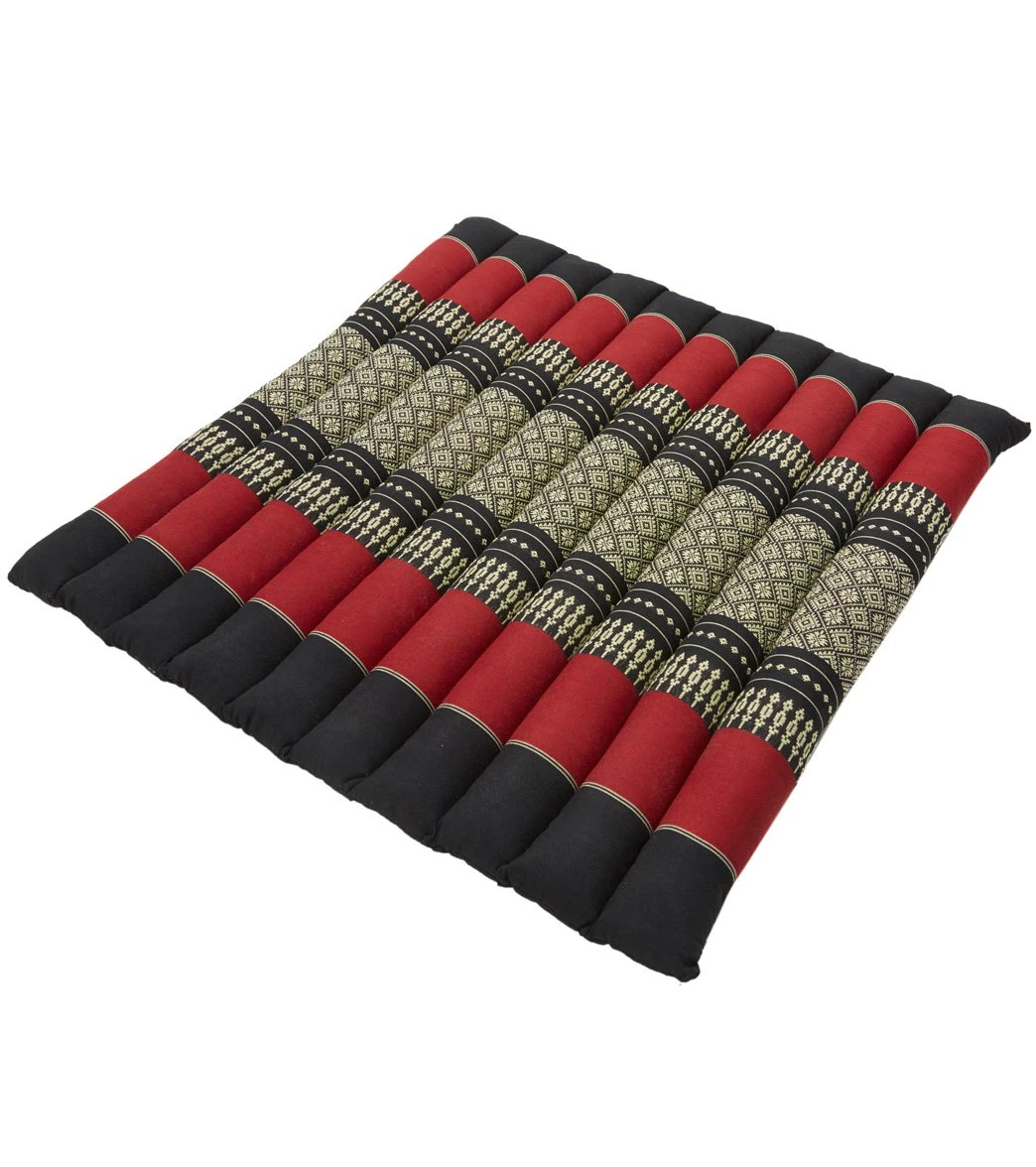 Handmade in Thailand, this Zafuko Large Rollable Flat Meditation Cushion provides stability during exercises and provides comfort during difficult poses.